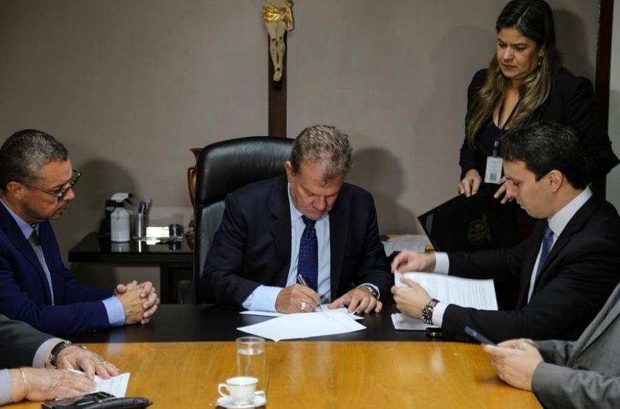O Tribunal de Justiça de Sergipe (TJSE) e o Estado de Sergipe celebraram nesta quarta-feira, dia 26/6, um Acordo de Cooperação Técnica para o compartilhamento de informações relativas ao fluxo de processos de precatórios. Assinaram o acordo o presidente do TJSE, des. Ricardo Múcio, o governador Fábio Mitidieri, o procurador-geral do Estado, Carlos Pinna de Assis Junior e secretário da Fazenda, em exercício, Laércio Marques.