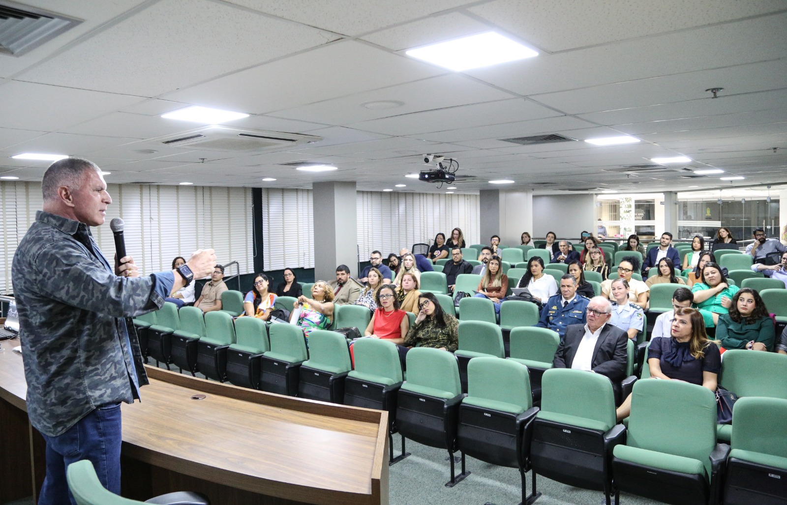 Durante a aula, Rogério Greco destacou a relação entre a teoria do direito penal do inimigo e o combate à criminalidade. “Hoje, a gente vive num mundo de facções que é assustador. Quando a gente fala em Direito Penal do Inimigo significa que a sociedade precisa combater a violência que a gente vê diariamente. É uma teoria ainda muito questionada no mundo inteiro por ser radical, mas ela mudou a teoria do direito penal”, sinalizou o procurador.