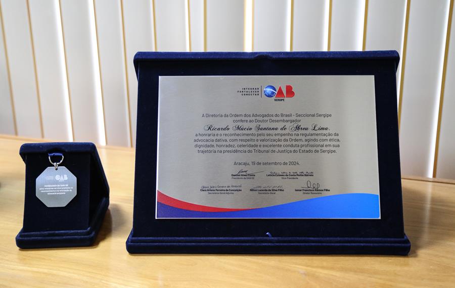 A OAB Sergipe entregou ao presidente do TJSE um certificado e uma medalha, em reconhecimento ao empenho na regulamentação da advocacia dativa. O certificado ressaltou "o respeito e valorização da Ordem, agindo com ética, dignidade, honradez, celeridade e excelente conduta profissional em sua trajetória na presidência do Tribunal de Justiça".