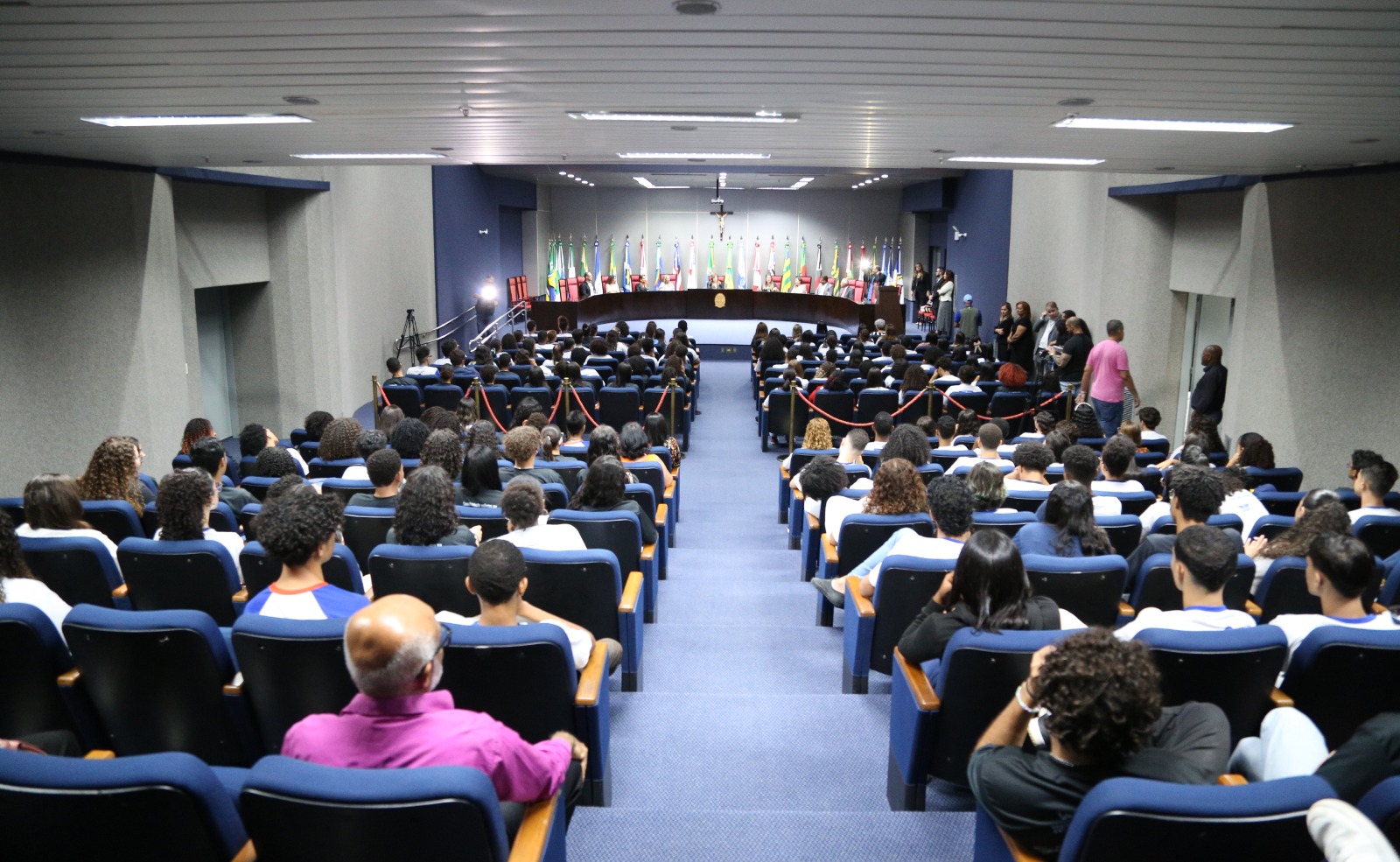 A Coordenadoria da Infância e Juventude (CIJ) do Tribunal de Justiça de Sergipe (TJSE), em parceria com a Escola Judicial de Sergipe (Ejuse) e Secretaria de Estado da Educação e da Cultura (Seduc), lançou nessa quarta-feira, 30 de outubro, o projeto-piloto de Formação de Estudantes Monitores em Educação Cidadã. Centenas de alunos da rede pública estadual compareceram ao auditório do Palácio da Justiça para assistir e interagir na aula inaugural do projeto, conduzida pela professora Madu Macedo, autora da Coleção ‘Em miúdos’, publicação do Senado Federal que trata de forma lúdica temas ligados à cidadania e direitos humanos, como o Estatuto da Criança e Adolescente (ECA), Lei Maria da Penha e Constituição Federal.