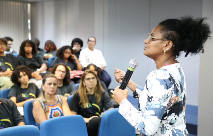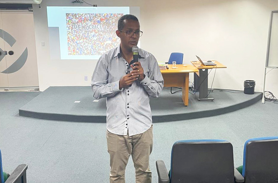 A primeira aula foi com a defensora pública Carla Caroline de Oliveira Silva, que falou sobre o Estatuto da Igualdade Racial. “O importante de entender sobre o Estatuto da Igualdade Racial primeiro é a existência de um diploma legislativo que garante a população parda e preta o não à discriminação, o não sofrer por racismo”, destacou a defensora durante a aula. Depois do intervalo, o professor e mestre em História Jairton Peterson Rodrigues dos Santos falou sobre ‘Estado, Poderes e Democracia’.