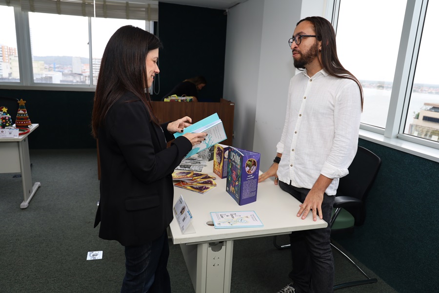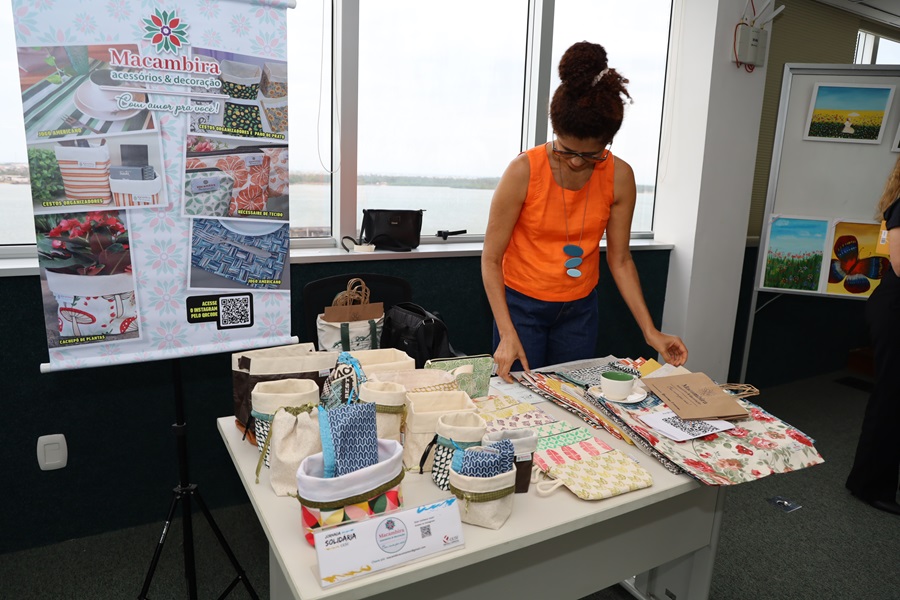 Após a palestra, os presentes puderam apreciar o artesanato de decoração e utilidades de Heloisa Joana (@macambiracomamor), o crochê de Márcia Cruz (@be.nic) e a exposição de livros de André Comanche (@do.conto.ao.traco). Além disso, os participantes também puderam conhecer as telas da artista plástica Keila Izabel (@keilaizabel.artes).