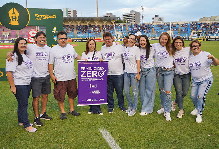 Em Sergipe, a ação desenvolvida pelo Ministério Público de Sergipe (MPSE) em parceria com a Associação Sergipana do Ministério Público (ASMP) e a Federação Sergipana de Futebol aconteceu antes da partida entre Confiança e Sergipe e contou com a participação da juíza coordenadora da Mulher do TJSE, Juliana Nogueira Galvão Martins.