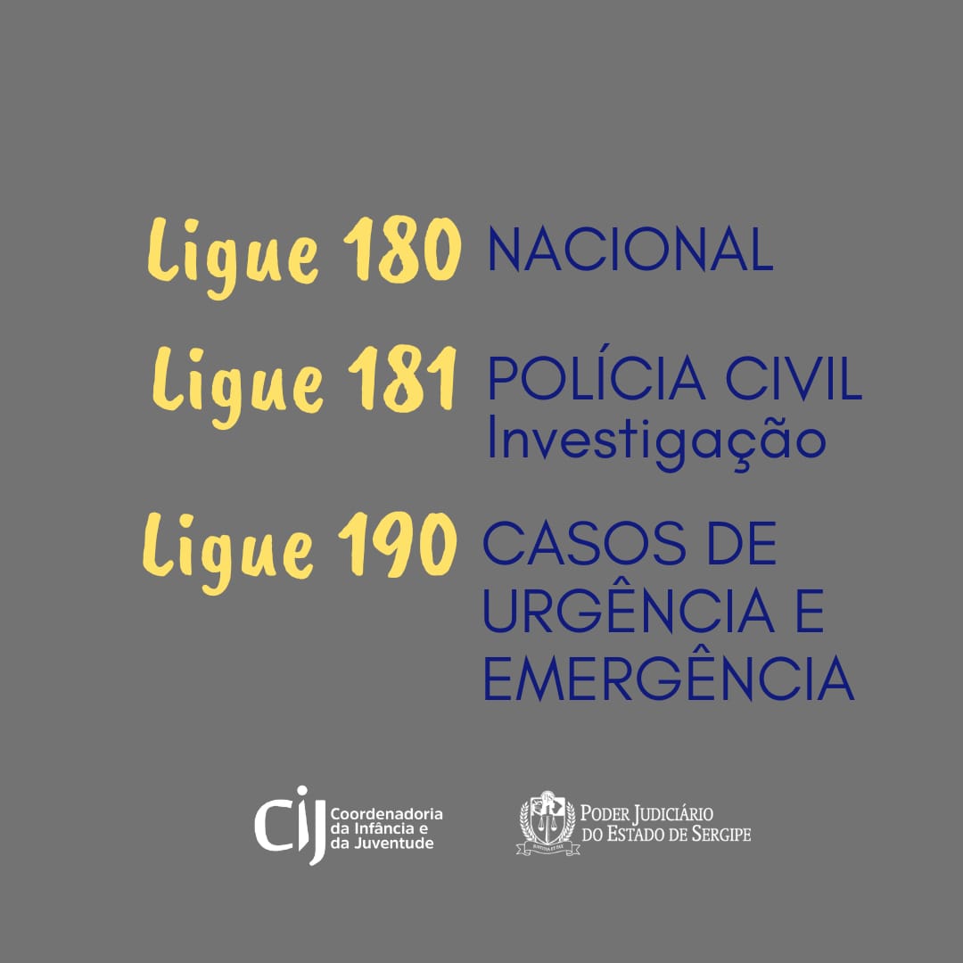O material traz ainda os contatos para as denúncias em casos de violação de direitos, que podem ser feitas pelos números 180 (Central de Atendimento à Mulher nacional), 181 (Polícia Civil - Investigação) e 190 (Polícia Militar para casos de urgência e emergência).