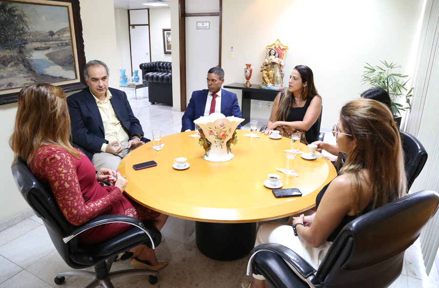 A presidente do Tribunal de Justiça de Sergipe (TJSE), desembargadora Iolanda Guimarães, recebeu nesta terça-feira, 11 de março, a visita institucional do delegado-geral da Polícia Civil de Sergipe (PC-SE), Thiago Leandro. Também participaram do encontro, em que foram tratados assuntos relevantes e de interesse comum entre TJSE e PC-SE, a coordenadora das Delegacias da Capital, delegada Rosana Freitas, o coordenador das Delegacias do Interior, delegado Jonathas Evangelista, a corregedora-geral, delegada Carina Rezende, e a diretora de Segurança do TJSE, delegada Maria Pureza Machado Soares.