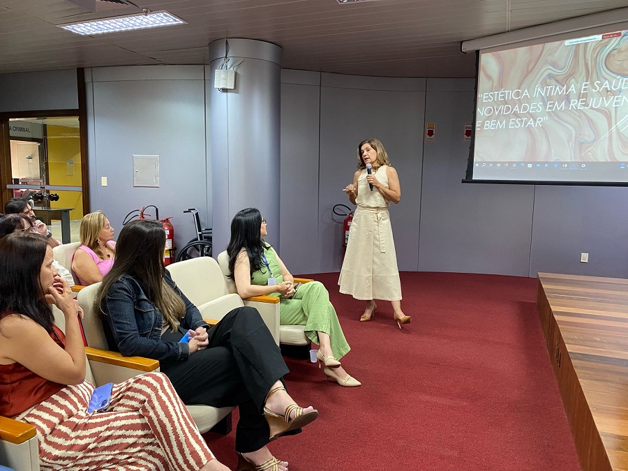 Logo em seguida, a ginecologista e obstetra Rosita Fiorotto falou sobre as novidades no tratamento relativo à estética íntima. A médica destacou alguns fatores que favorecem a perda funcional e estética da área genital feminina, entre eles o cronológico, menopausa, traumas obstétricos, variações de peso, tabagismo, etilismo e radioterapia.