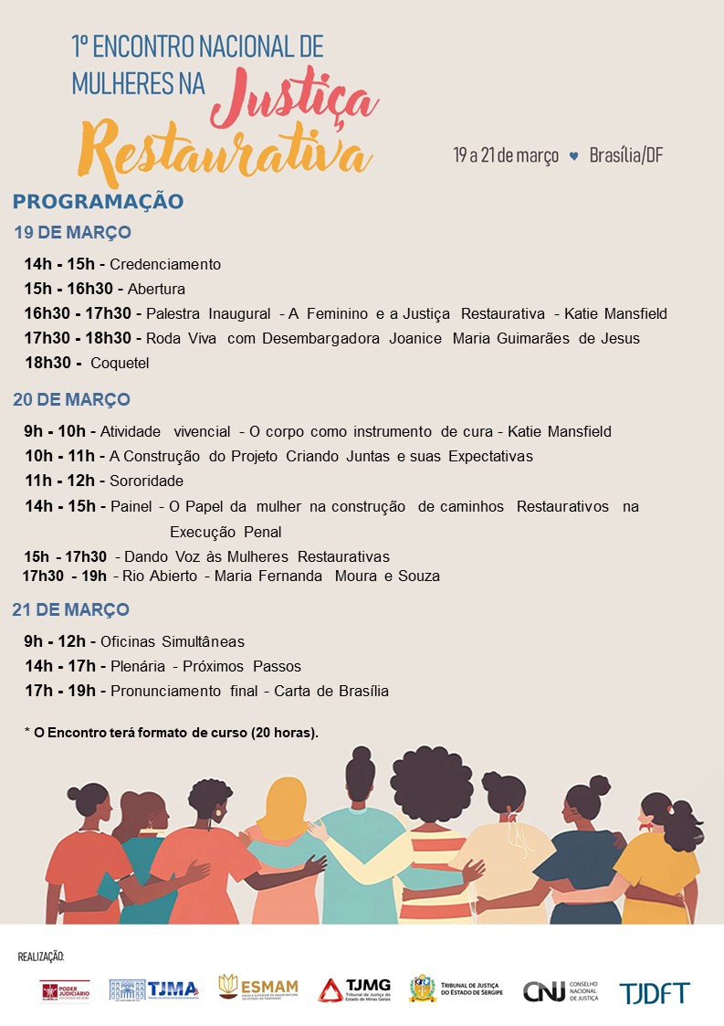 O evento será promovido pelo Conselho Nacional de Justiça, o Tribunal de Justiça do Distrito Federal e Territórios, o Tribunal de Justiça do Maranhão, o Tribunal de Justiça de Minas Gerais, o Tribunal de Justiça do Estado do Acre e o Tribunal de Justiça de Sergipe.