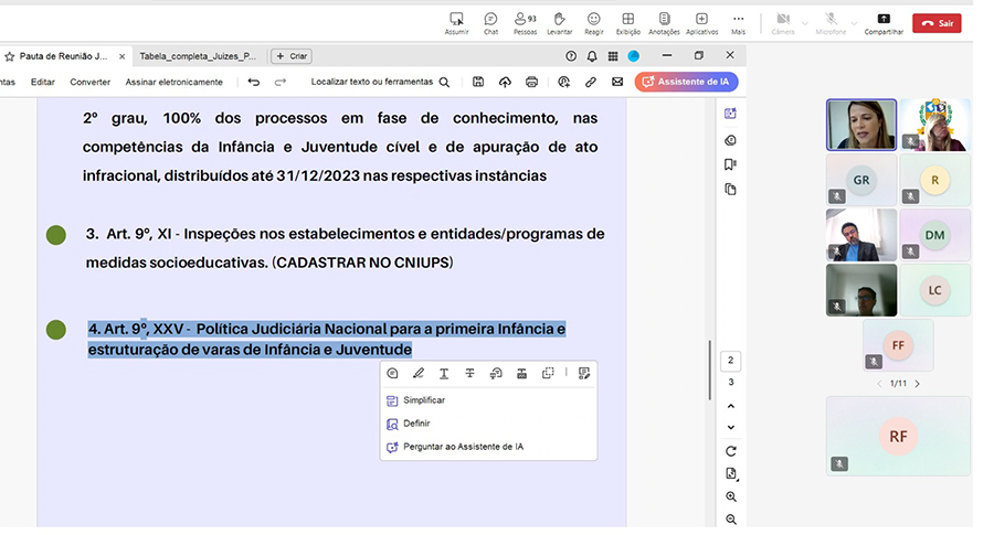 Ao final, foi dito aos magistrados que, através do contato institucional e dos e-mails funcionais, serão enviados os materiais de apoio elaborados pela CIJ para auxílio no cumprimento das metas.