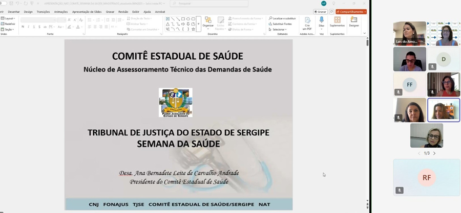 Fomentar iniciativas que promovam a integração de ações entre os Poderes Judiciário, Executivo e Legislativo, bem como a colaboração de entidades públicas e privadas atuantes na área da saúde. Este é o objetivo da Semana Nacional da Saúde, iniciada nesta segunda-feira, 7/4, e que prossegue até sexta. No Tribunal de Justiça de Sergipe (TJSE), a programação foi iniciada com uma palestra on-line sobre a atuação do Núcleo de Assessoramento Técnico ao Judiciário para Demandas de Saúde (NatJud).