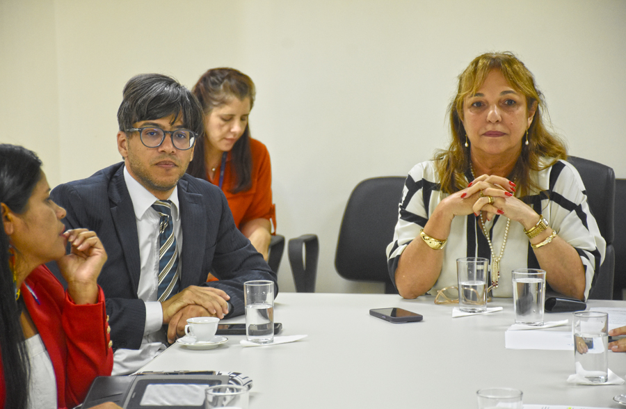 Ao final da reunião com o Comeger, os representantes dos povos indígenas Xocós e Fulkaxós foram recebidos pela presidente do TJSE, desa. Iolanda Guimarães.
