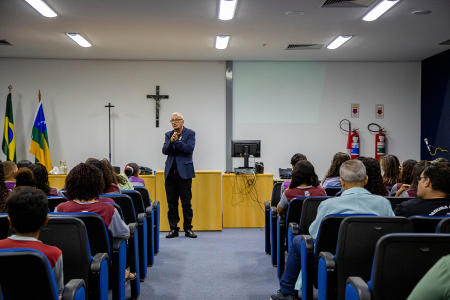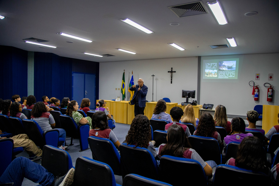 “Vieram com a missão de catequizar, mas hoje vemos com um olhar diferenciado. Além de catequizar, quiseram impor uma cultura europeia em cima de uma cultura que já existia. Por isso, hoje não se usa mais a palavra descobrimento porque quando chegaram aqui já existia um povo que tinha sua história, sua memória”, ressaltou Adailton, que ainda falou sobre os tipos de documentação da época, como atas e livros de finanças, e a importância da preservação arquivística.