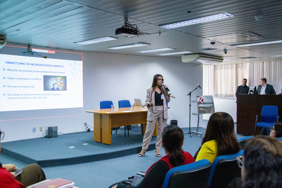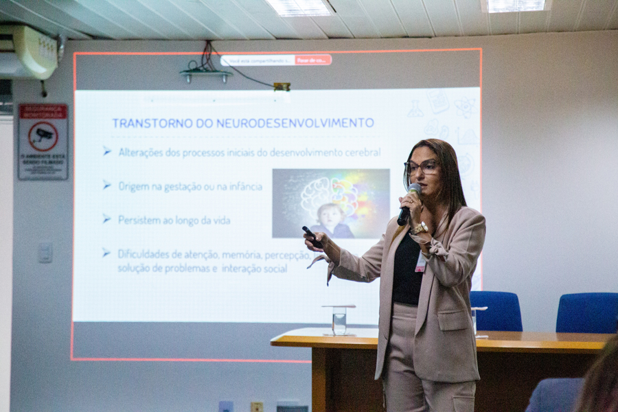 A palestra foi ministrada pela médica psiquiatra Karla Maria Nunes Ribeiro Barreto, que possui atuação reconhecida na área da saúde mental e neurodesenvolvimento. “Eu aceitei de prontidão o convite porque temos visto um aumento dos diagnósticos do Transtorno do Espectro Autista e percebo que, se por um lado, há realmente justificativas para este aumento real na prevalência, por outro, tenho visto muitas crianças que não estão dentro do espectro com diagnósticos. E eu acredito que informação é tudo, mesmo não sendo um público da área da saúde, mas quando levamos informação contribuimos para que o quadro seja melhor conhecido”, ressaltou a psiquiatra.