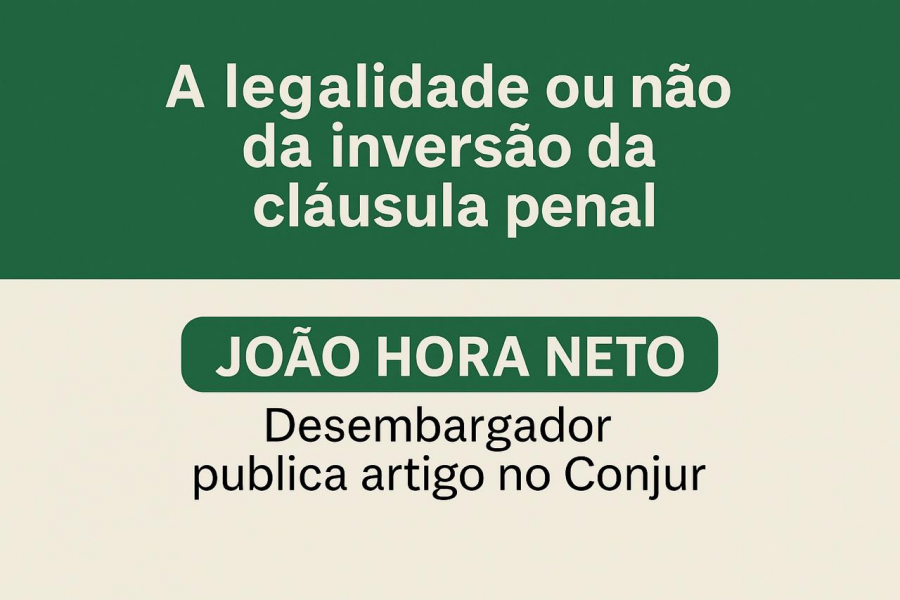 O desembargador João Hora Neto, do Tribunal de Justiça de Sergipe (TJSE), publicou nesta quarta-feira, 15 de maio, artigo no site Consultor Jurídico (Conjur) com o título ‘A legalidade ou não da inversão da cláusula penal’. No texto, o magistrado analisa a possibilidade jurídica de aplicar a cláusula penal contra o credor inadimplente, prática que inverte a lógica tradicional do instituto, geralmente voltada ao devedor.