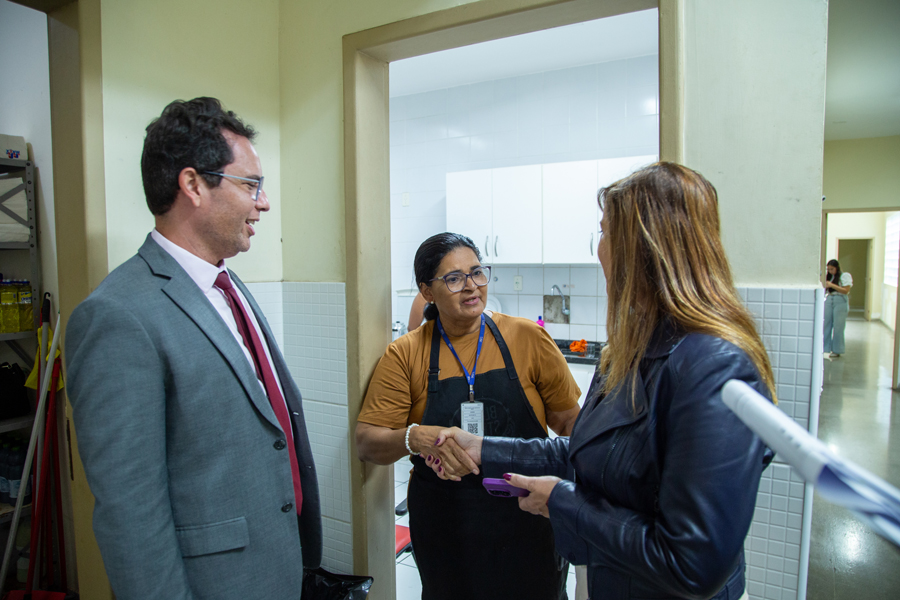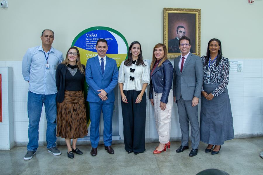 Durante as visitas técnicas desta quinta-feira, a presidente Iolanda Guimarães esteve acompanhada pelo juiz-auxiliar Leonardo Almeida, pelas juízas-coordenadoras Iracy Mangueira (Infância e Juventude) e Juliana Martins (Mulher), pelo secretário de Planejamento e Administração, Thyago Avelino, e pela chefe do Departamento de Obras, Adriana Hagenbeck.