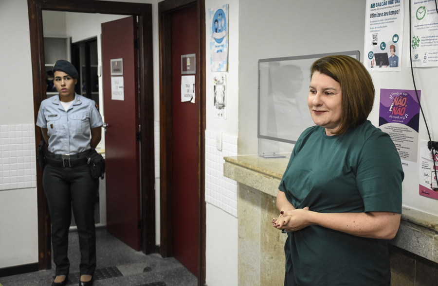 A professora de espanhol Marta Martins é vítima em um processo que tramita no 1º Juizado de Violência Doméstica e Familiar contra a Mulher. Há cinco anos, ela sofreu uma situação de violência e desde então possui medida protetiva deferida pelo judiciário e é assistida pela Patrulha Maria da Penha. Marta foi uma das mulheres convidadas para a roda de conversa Girassol.