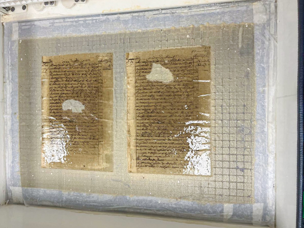 Partindo desta proposta, o Arquivo Judiciário desenvolveu uma oficina no laboratório de restauro que ensina na prática como proceder com os documentos que foram danificados com água e fogo, com a finalidade de minimizar danos e conservar o patrimônio documental após estes eventos climáticos.
