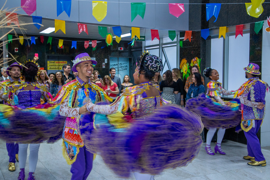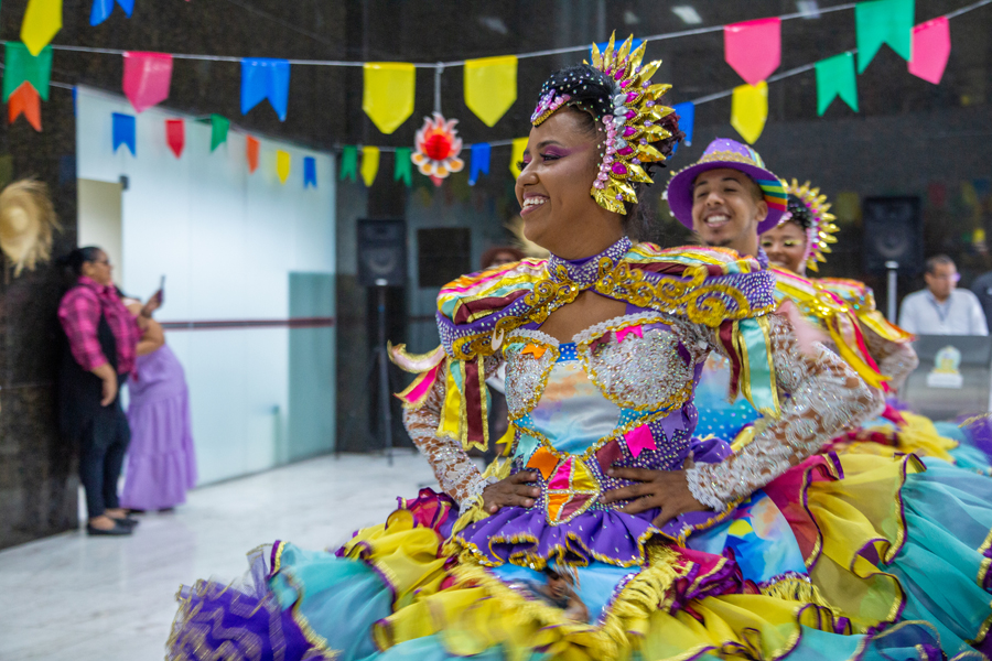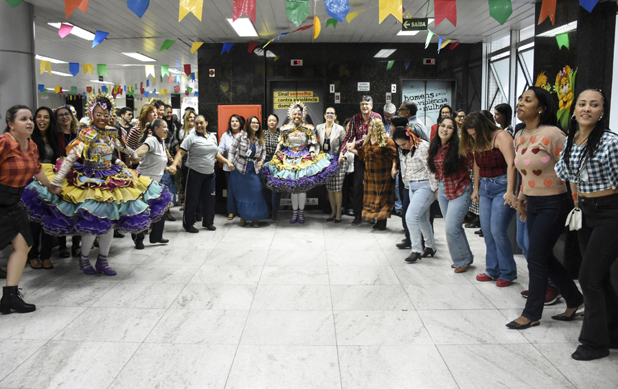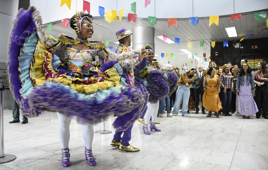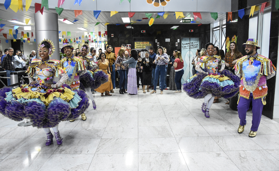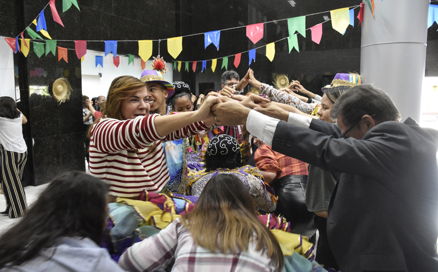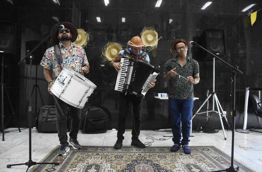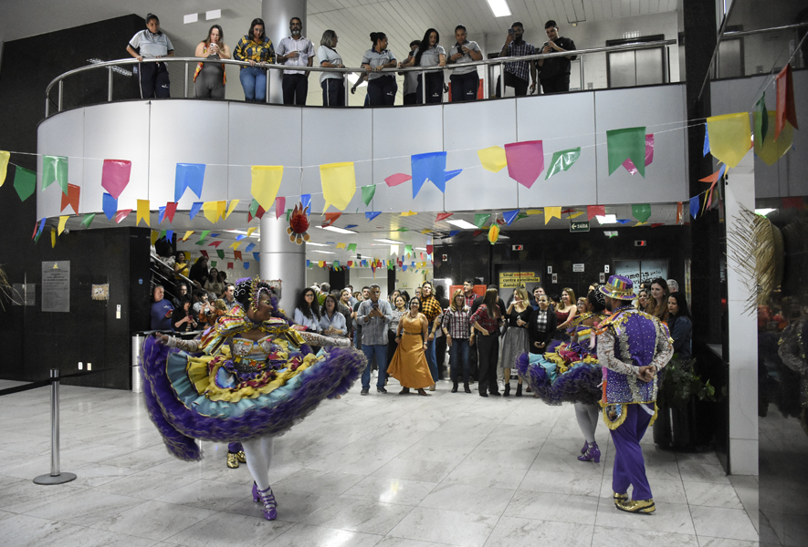O expediente desta quarta-feira, 18/06, véspera de feriadão, terminou muito animado para os servidores e magistrados que trabalham no Palácio da Justiça e Anexos I e II. Um trio comandado pelo forrozeiro e cordelista Chiquinho do Além-Mar e três casais de uma quadrilha junina colocaram todo mundo para dançar forró.