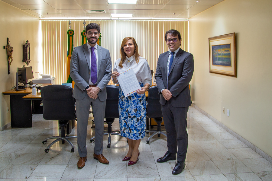 O Energy Legal Talk 2025 é organizado pelo Sebrae, com apoio dos Escritórios Monteiro Nascimento Advogados e do Gaia Silva Gaede Advogados, da Rede Petrogás e da Revista Advogados. Fizeram a entrega do convite para a presidente, os advogados Edgar Leite e Jurandyr Cavalcante, coordenadores científicos do evento.