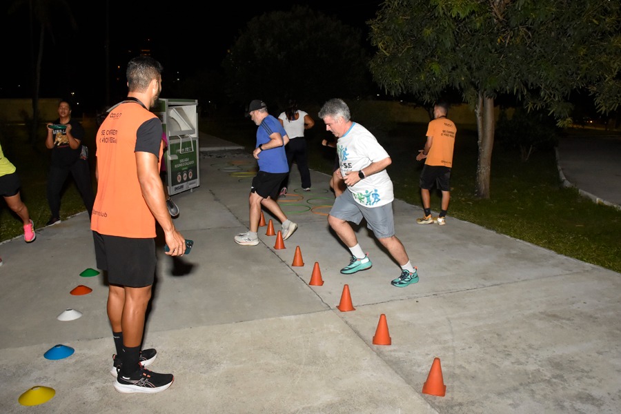 Já no início da semana, na segunda-feira, dia 21/07, ocorreu o primeiro dia de atividades desta edição. As servidoras e servidores aproveitaram o final da tarde no Parque da Sementeira para caminhar, para a prática de exercícios funcionais e para o treino de corrida.
