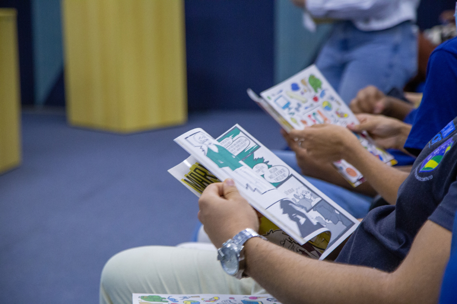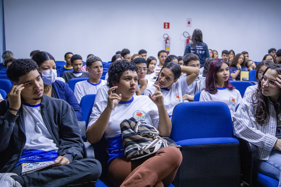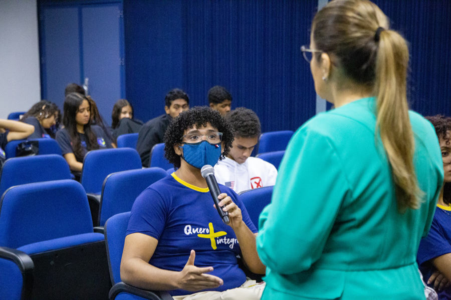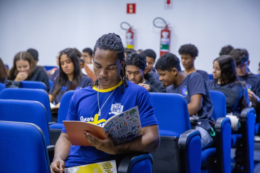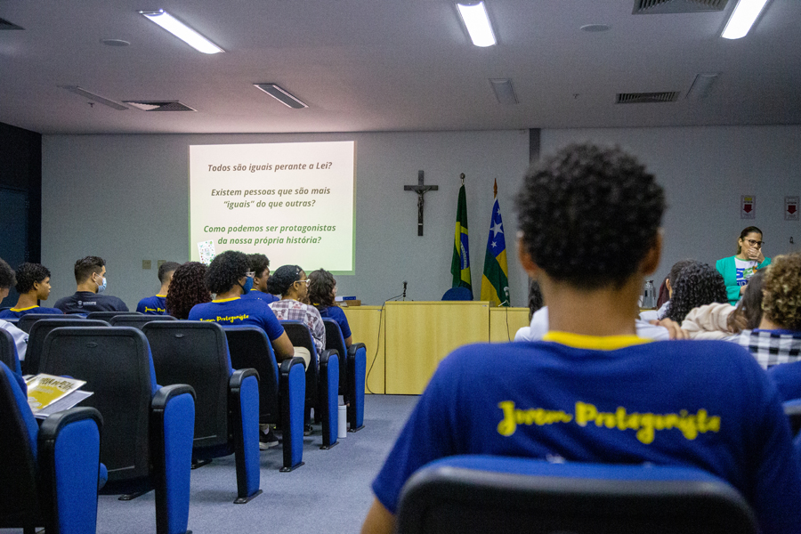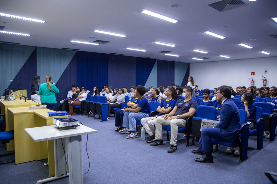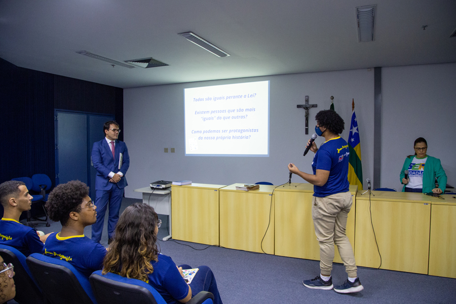 Durante a aula de Estatuto da Criança e do Adolescente, que foi ministrada pela juíza Iracy Mangueira e pela coordenadora do projeto Renata Mascarenhas, o consultor Edgar Leite ainda pôde conversar com os estudantes sobre a importância do projeto.