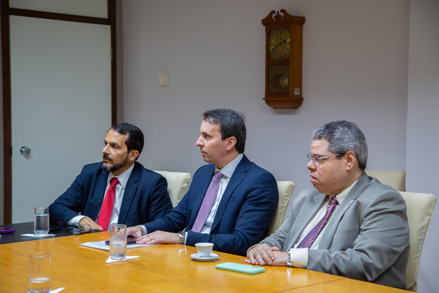 A presidente do Tribunal de Justiça de Sergipe, desembargadora Iolanda Guimarães, reuniu-se na manhã desta segunda-feira, 4 de agosto, com o procurador-geral do Estado (PGE), Carlos Pinna Júnior, e do Município de Aracaju (PGM), Hunaldo Mota. Junto com o juiz-corregedor Francisco Alves Júnior, e da juíza Hercília Maria Fonseca Lima Brito, coordenadora do Núcleo Permanente de Métodos Consensuais de Solução de Conflitos (Nupemec), foi apresentado aos procuradores o Programa de Autocomposição com a Fazenda Pública, uma iniciativa fundamental para modernizar a forma de lidar com litígios que envolvem o poder público.