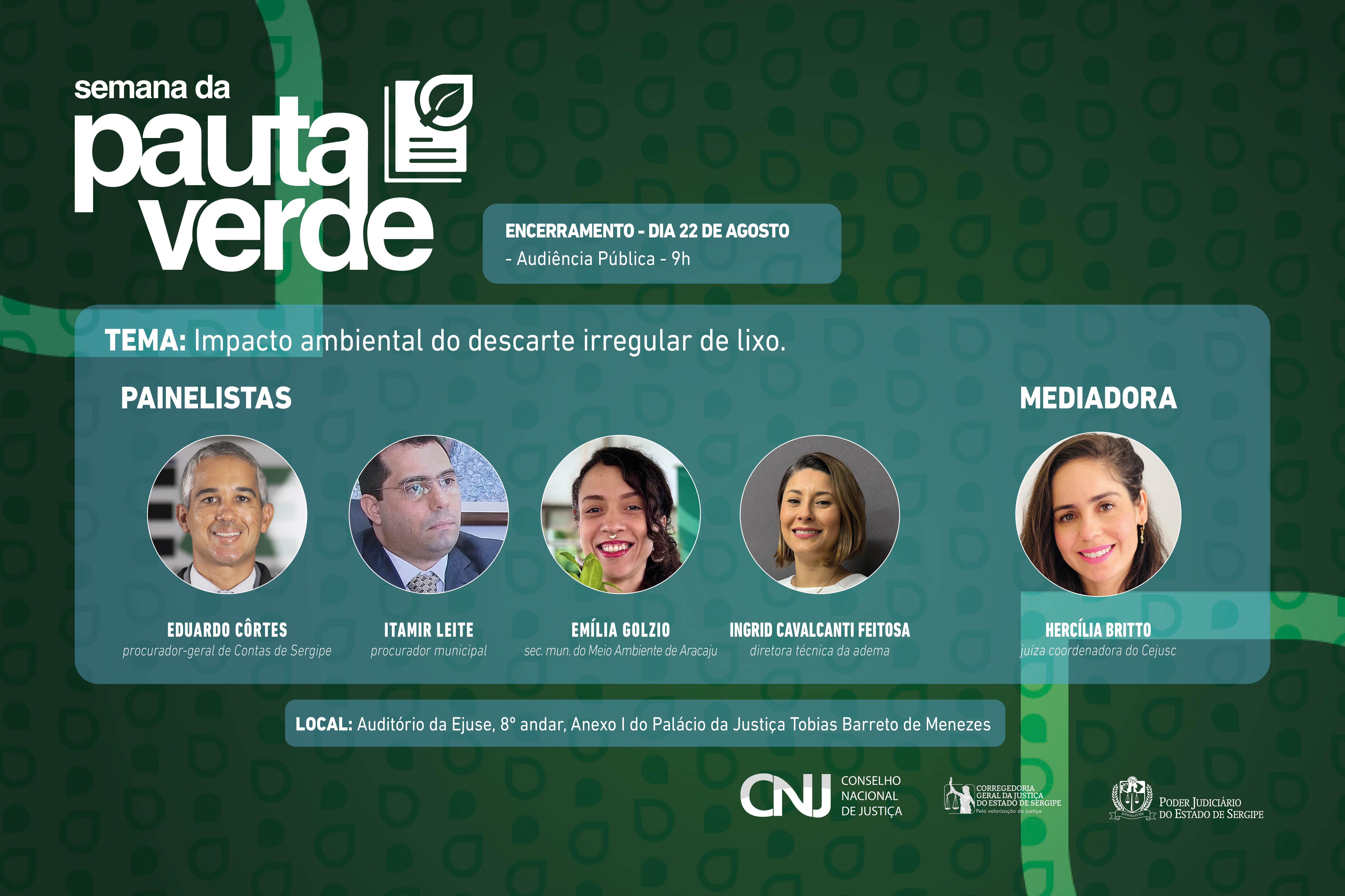 Local: Auditório da Ejuse, Anexo I do Palácio da Justiça Tobias Barreto de Menezes.