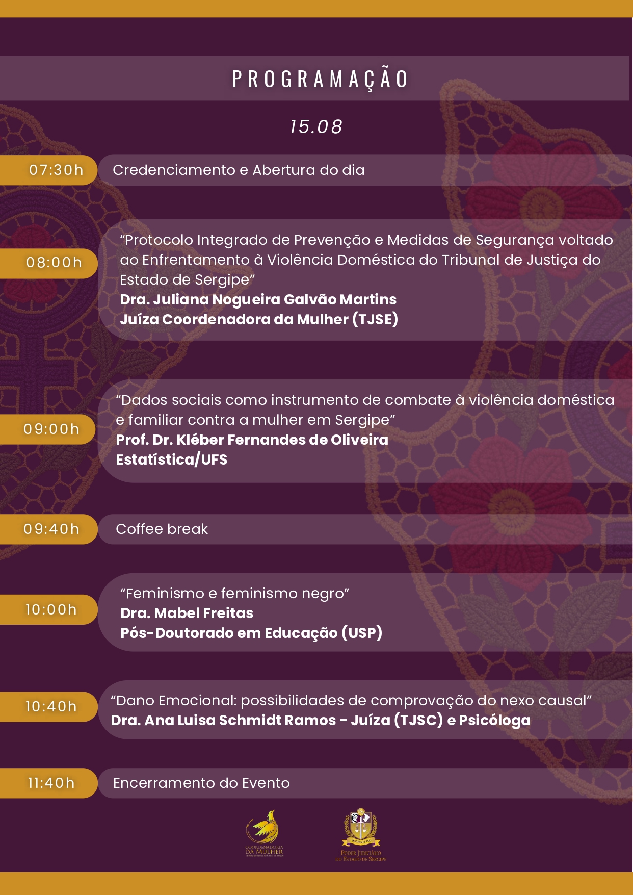 8h - ‘Protocolo Integrado de Prevenção e Medidas de Segurança voltado ao Enfrentamento à Violência Doméstica do Tribunal de Justiça do Estado de Sergipe’, com Juliana Nogueira Galvão Martins, juíza-coordenadora da Mulher do TJSE