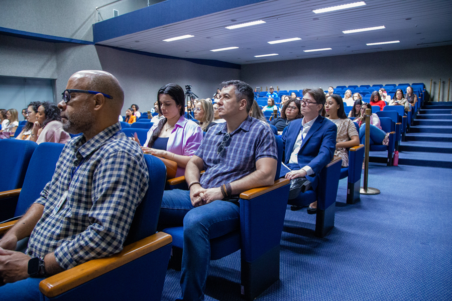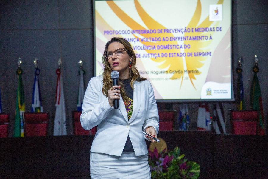 A primeira palestra foi proferida pela juíza Juliana Martins, coordenadora da Mulher do TJSE. Ela falou sobre o Protocolo Integrado de Prevenção e Medidas de Segurança voltado ao Enfrentamento à Violência Doméstica do TJSE. O novo protocolo foi instituído pela Resolução 24/2025 que, conforme a juíza, busca assegurar um ambiente de trabalho seguro e inclusivo, oferecendo acolhimento, com confidencialidade e proteção de suas identidades, a magistradas e servidoras vítimas de violência doméstica e familiar.