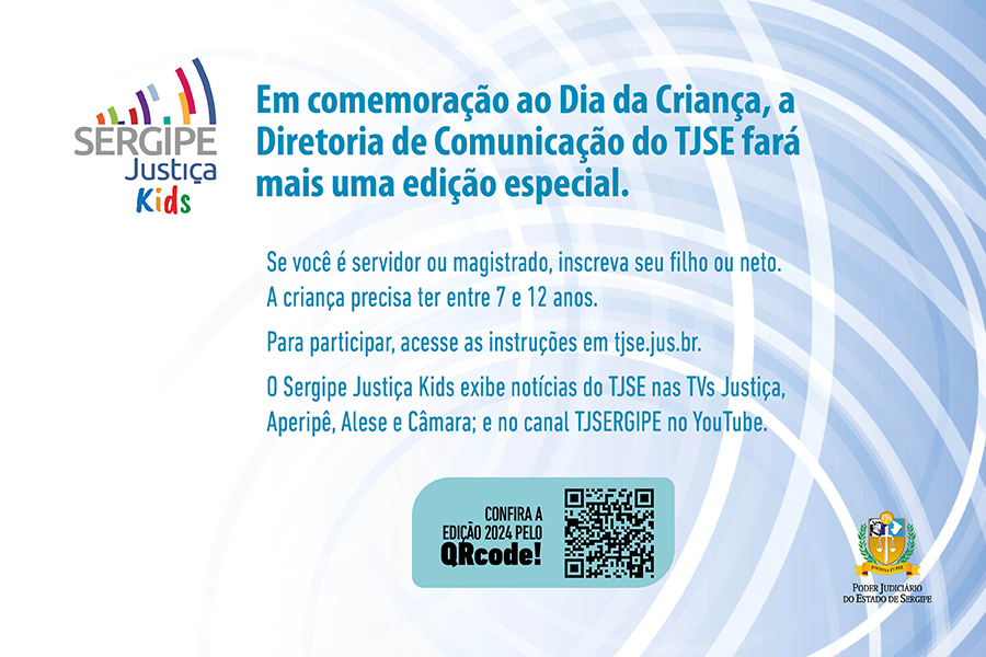 A Diretoria de Comunicação (Dicom) do Tribunal de Justiça de Sergipe (TJSE) fará mais uma edição especial do Sergipe Justiça, em comemoração ao Dia da Criança. O Sergipe Justiça Kids foi ao ar pela primeira vez em 2019 e teve uma quarta edição em 2024. O programa trará assuntos relativos ao Judiciário mostrados por crianças, cabendo a elas as funções de repórteres e apresentadores.