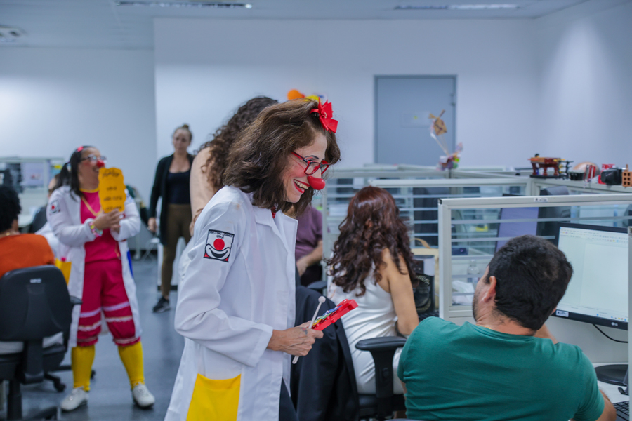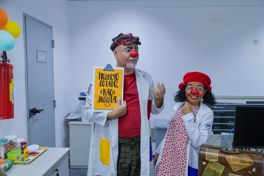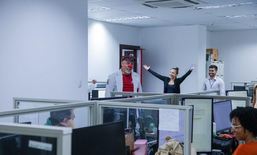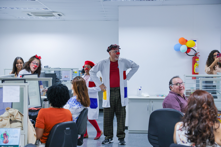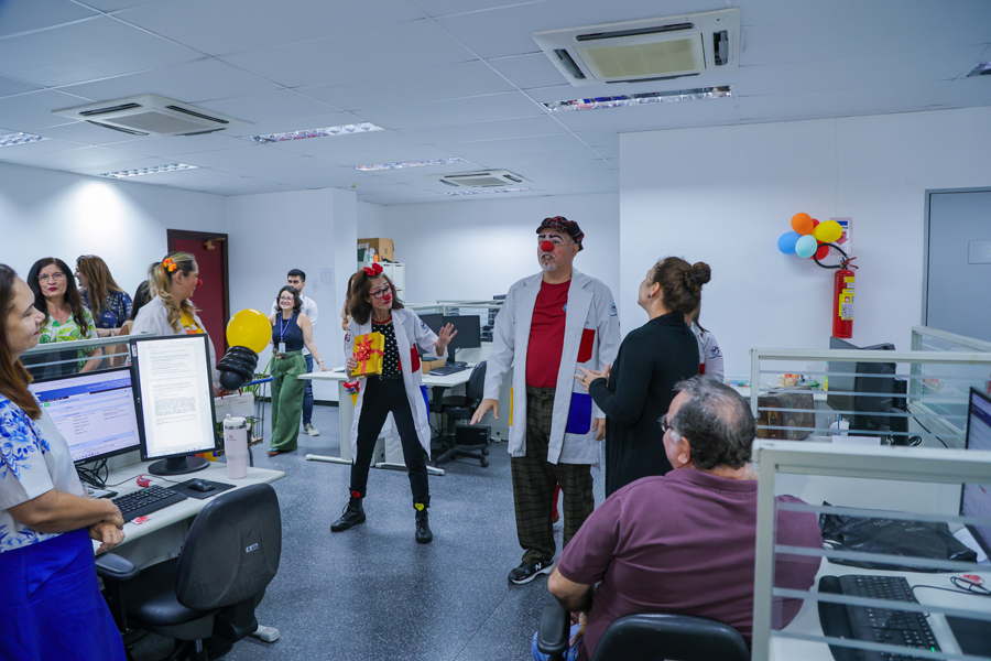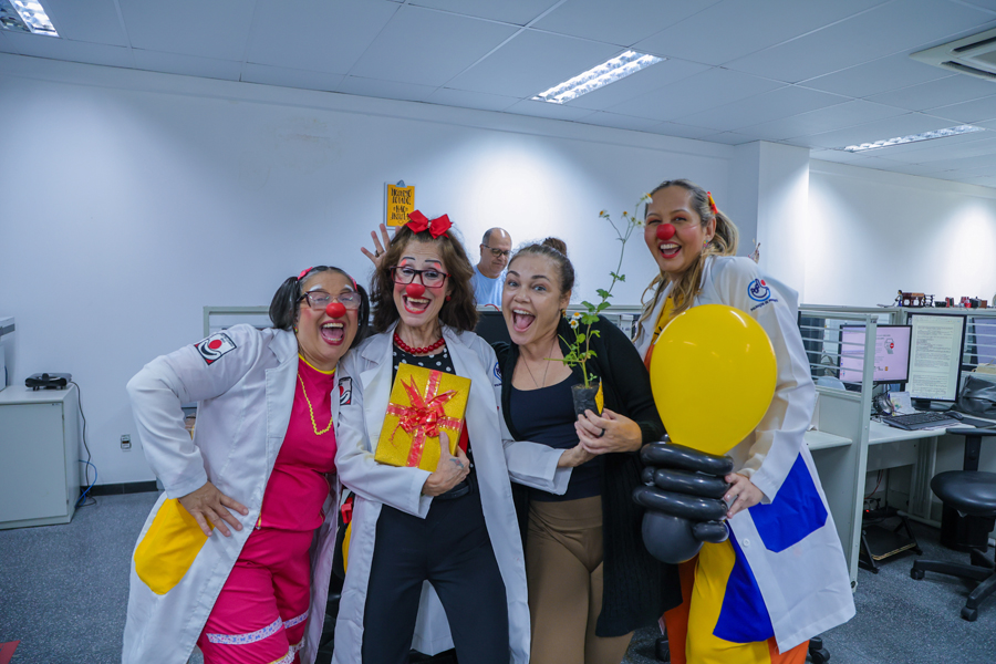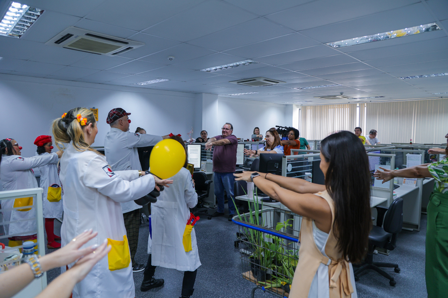 O grupo Palhaços de Propósito, composto por voluntários, atua desde 2015, especificamente em hospitais públicos, nos estados de Sergipe e da Bahia. No mês de setembro, o grupo abre sua agenda para intervenções em órgão públicos, a fim de conscientizar sobre o cuidado com a saúde mental. Os palhaços dr. Costela e dra. Batata, idealizadores do projeto, e palhaças voluntárias envolveram os servidores com muitas brincadeiras.