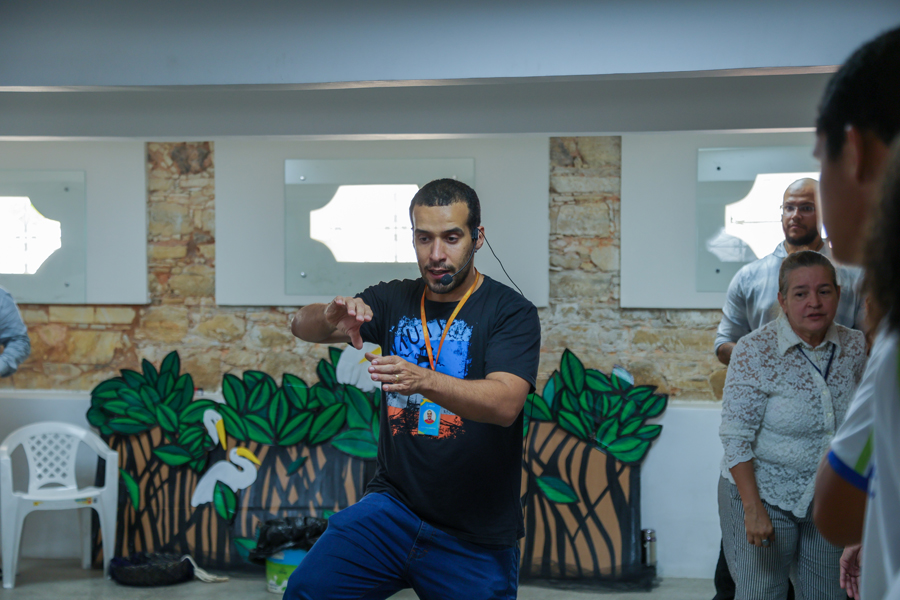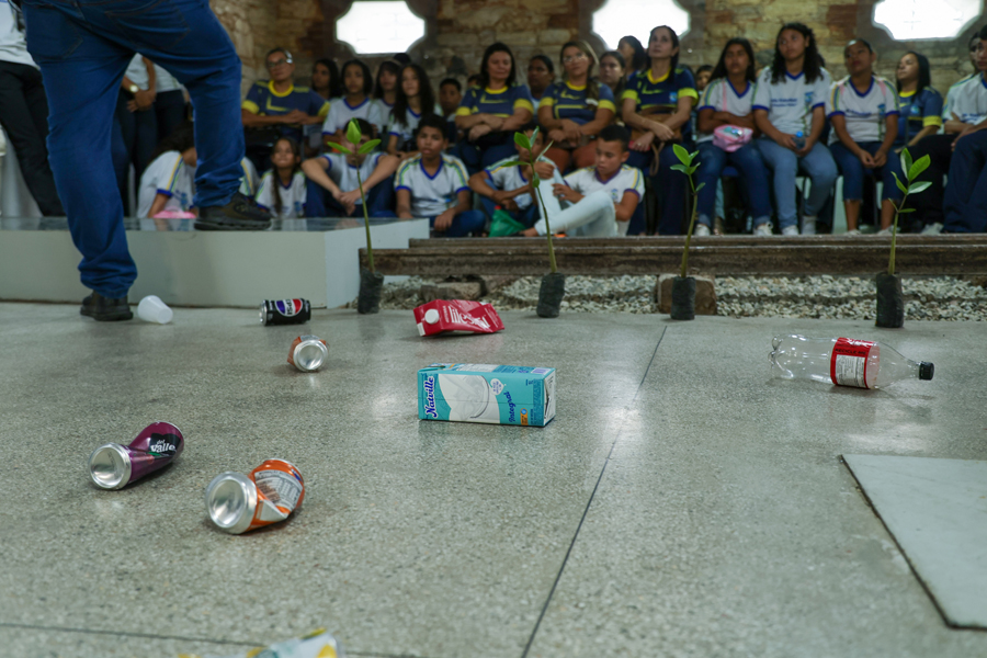“Depois que recebemos o convite para participar da ação, viemos ao Memorial do Judiciário, e definimos qual seria a melhor estratégia, a melhor intervenção artística, tendo em mente a idade e o público que estaria aqui hoje. Tratamos da temática do manguezal, que contempla todo o município de Aracaju praticamente, e destacar, além da necessidade de conscientização sobre a conservação, o trabalho que estamos fazendo de replantio de espécies nativas e recuperação de áreas degradadas de manguezais”, disse o coordenador de Educação Ambiental da Sema, Albert Rocha. Os técnicos da secretaria municipal realizaram palestra sobre o tema e apresentaram a esquete teatral “Mangue bicho planta flor”, encenada justamente ao lado do trilho preservado no prédio.