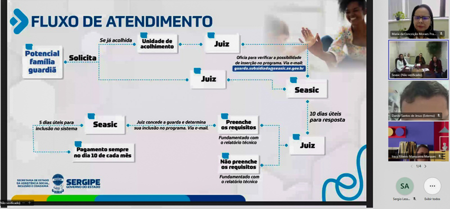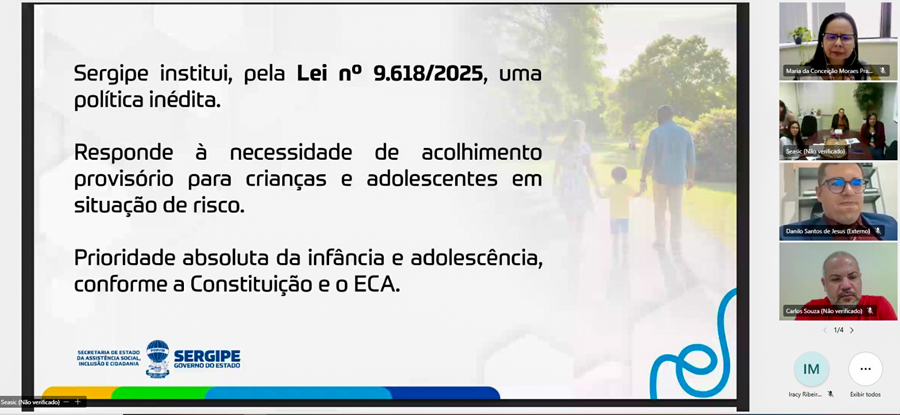 Na semana da criança, a Coordenadoria da Infância e da Juventude (CIJ), do Tribunal de Justiça de Sergipe e a Secretaria de Estado da Assistência Social, Inclusão e Cidadania (Seasic) realizaram uma reunião virtual para apresentar a Lei nº 9.618/2025, que instituiu o Programa “Guarda Subsidiada Provisória”. A nova legislação tem como finalidade garantir proteção e acolhimento às crianças e adolescentes em situação de violação de direitos ou de risco social e pessoal, priorizando sua colocação em famílias da rede extensa ou ampliada, em detrimento da permanência em instituições de acolhimento.