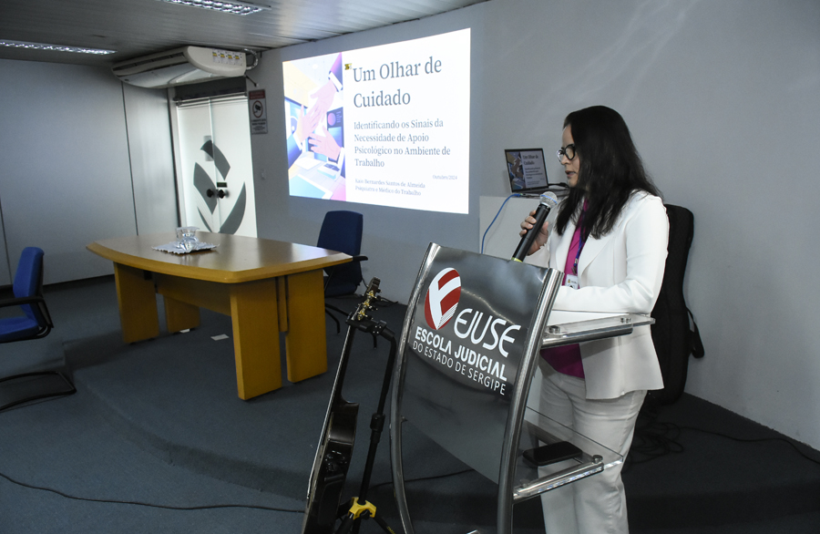A palestra foi uma iniciativa da Ejuse e contou com a presença do diretor da escola, o desembargador Gilson Felix dos Santos. O psiquiatra Kaio Bernardes, que é médico do trabalho do TRE/SE, começou a apresentação tocando e cantando a música "Paciência", de Lenine. Ele falou sobre saúde mental do ponto de vista de vários estudiosos do tema e mostrou os sinais que merecem uma atenção especial.