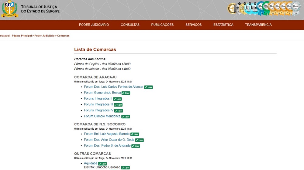 A partir do dia 04/11 cada comarca passa a contar com um botão exclusivo de discagem direta na página de “Comarcas”, no Portal do TJSE (https://www.tjse.jus.br/portal/poder-judiciario/comarcas), permitindo que advogados, partes, servidores e cidadãos possam estabelecer comunicação telefônica de forma mais eficiente. A inovação contribui para a modernização da comunicação institucional, ampliando a acessibilidade e facilitando a prestação jurisdicional em todo o Estado.