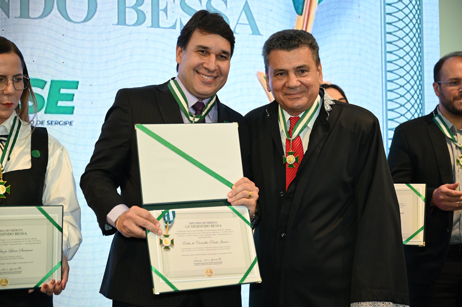 O vice-presidente do Tribunal de Justiça de Sergipe (TJSE), desembargador Etélio de Carvalho Prado Junior, e o juiz de Direito Sérgio Lucas, foram agraciados pelo Tribunal de Contas do Estado de Sergipe (TCE-SE) com o Colar e Diploma do Mérito “Gumersindo Bessa”, a mais alta honraria concedida pela Corte de Contas. A distinção reconhece a trajetória de dedicação dos magistrados ao fortalecimento do Judiciário e à promoção da ética e transparência na administração pública.