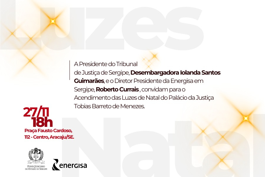 O Palácio de Justiça Tobias Barreto de Menezes, localizado na praça Fausto Cardoso, receberá uma iluminação especial para o período natalino. Em parceria com a Energisa, as luzes serão acesas no dia 27 de novembro, quinta-feira, às 18 horas. O evento é aberto ao público e contará com apresentação da camerata e coral da Orquestra Jovem de Sergipe.