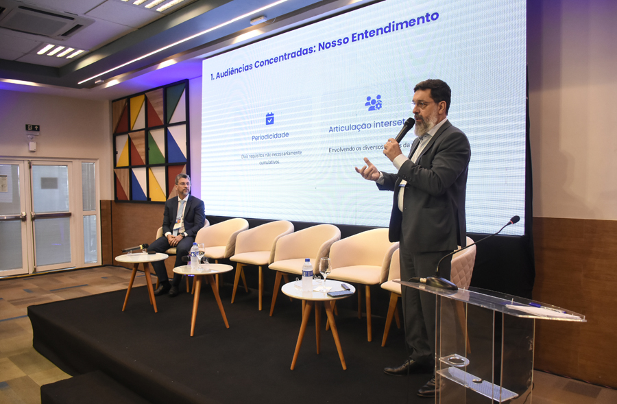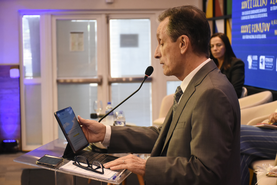 No painel “Saúde Mental de Adolescentes em Conflito com a Lei”, o desembargador Ruy Muggiati (TJPR), juiz auxiliar da presidência do Conselho Nacional de Justiça (CNJ), trouxe aspectos desta temática, que considera complexa. “A abordagem da lógica antimanicomial e de desinstitucionalização no tratamento destes adolescentes é diferente porque o tempo para eles é diferente. Este não é apenas um compromisso institucional, mas uma expressão concreta de um projeto de sociedade. Significa reconhecer o protagonismo da magistratura na real efetivação da socioeducação, cientes de que nenhuma das fragilidades das redes de proteção pode justificar a manutenção indevida de adolescentes sob tutela judicial. Ao contrário, impele-nos a fortalecer as políticas públicas e garantir que cada adolescente seja acompanhado em sua singularidade, com dignidade e respeito”, concluiu o desembargador, ao lado das juízas Célia Regina Lara (TJGO) e Naiana Lima Cunha Bhering (TJPE).