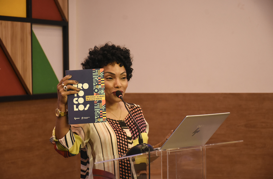 Na primeira palestra da manhã, a juíza Adriana Melonio (TRT10) abordou o tema “Protocolo de Atuação e Julgamento com Perspectiva de Infância e Juventude: um paradigma à prestação jurisdicional efetiva”. “Temos que reconhecer o ‘adultocentrismo’ no Sistema de Justiça e admitir que os ritos, práticas, estruturas e principalmente nossa linguagem foram desenhados por adultos e para adultos. A criança e o adolescente nunca foram vistos historicamente como sujeitos, eram no melhor das hipóteses objetos da nossa tutela e herança do antigo paradigma da situação irregular no Código de Menores. A partir da Constituição Federal de 1988 e do Estatuto da Criança e do Adolescente é que começamos a pensar uma proteção integral”, explicou a magistrada.
