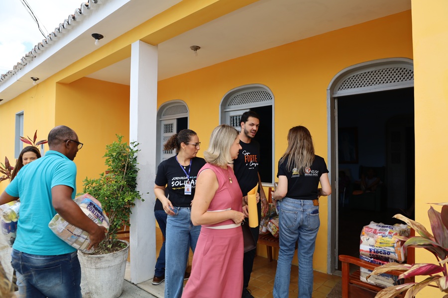 Nesta quinta-feira, 27/11, a equipe da Escola Judicial de Sergipe (Ejuse) iniciou, na cidade de Itabaiana, a entrega dos donativos arrecadados na Jornada Solidária da Ejuse, iniciada dia 3 de novembro. Três instituições que acolhem pessoas idosas em situação de vulnerabilidade receberam produtos doados de acordo com suas necessidades. Antes da doação, magistrados da Comarca de Itabaiana receberam a comitiva da Ejuse para um momento especial de sensibilização junto à comunidade local.