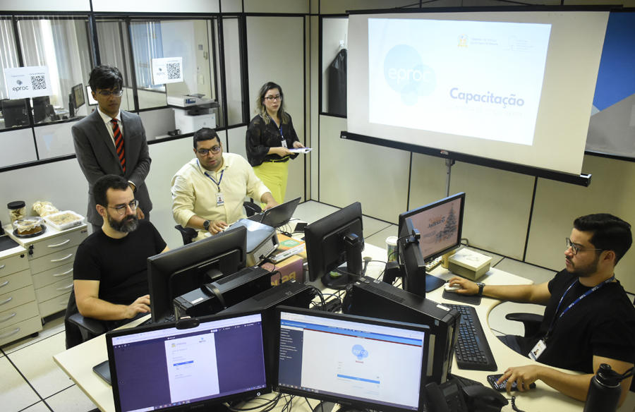 O Tribunal de Justiça de Sergipe (TJSE) iniciou nesta segunda-feira, 1º de dezembro, o uso do eproc para os processos da competência delegada de forma pioneira na comarca de Poço Verde. Para facilitar ainda mais o processo de implantação, os servidores da comarca e da área de Tecnologia da Informação e Modernização e Inovação do TJSE, após fase de treinamento à distância, receberam uma capacitação presencial no Anexo II do Palácio da Justiça em que puderam acessar a nova plataforma eletrônica de gestão processual e tirar as dúvidas na prática.
