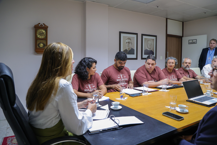 A presidente do Tribunal de Justiça de Sergipe (TJSE), desembargadora Iolanda Guimarães, esteve reunida na manhã desta sexta-feira, 30 de janeiro, com representantes do Sindicato dos Trabalhadores do Poder Judiciário (Sindijus). No encontro, que deu continuidade à pauta de negociações, a presidente apresentou contraproposta para melhorias na carreira dos servidores.