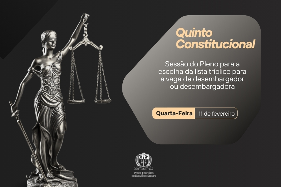 A presidência do Tribunal de Justiça de Sergipe (TJSE) comunica que a sessão para a escolha da lista tríplice para a vaga de desembargador ou desembargadora do quinto constitucional, decorrente da aposentadoria do desembargador Luiz Mendonça, está marcada para o Pleno do dia 11 de fevereiro.