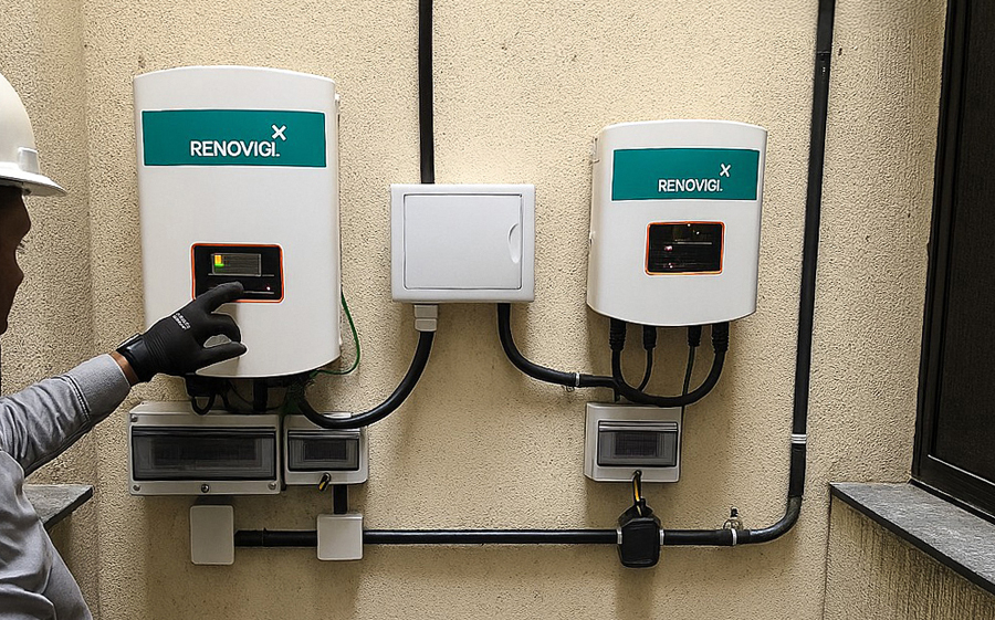 Após a revitalização, o sistema fotovoltaico do Fórum de Simão Dias funciona com 45 módulos de 330 Wp cada, totalizando uma potência instalada de 14,85 kWp, operando com dois inversores de potências distintas, que somam 12 kW.