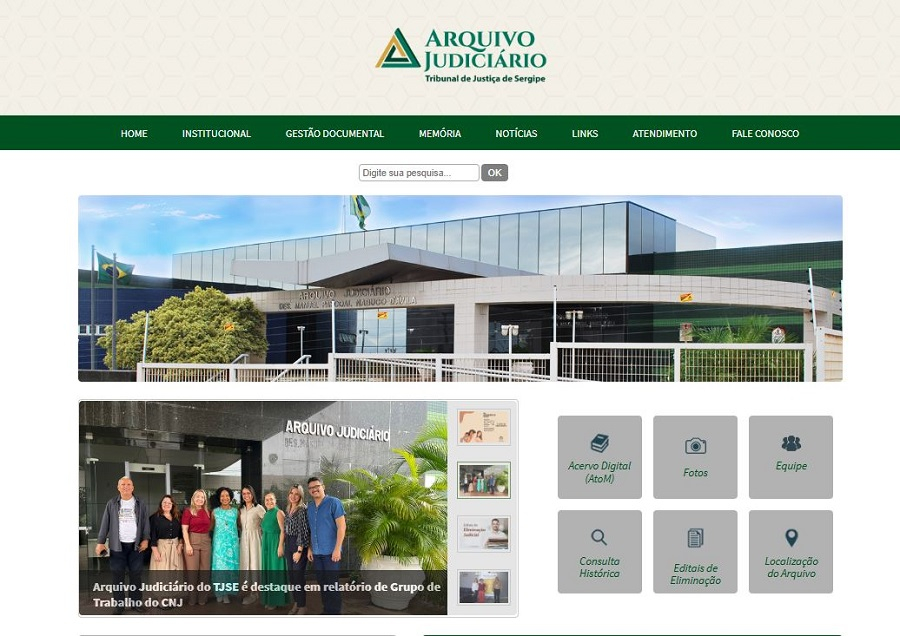 Menu Institucional: atualização da história do Arquivo, revisão da estrutura organizacional e da equipe de servidores, além da inclusão de 38 fotografias que retratam os ambientes técnico-operacionais do Arquivo Judiciário.