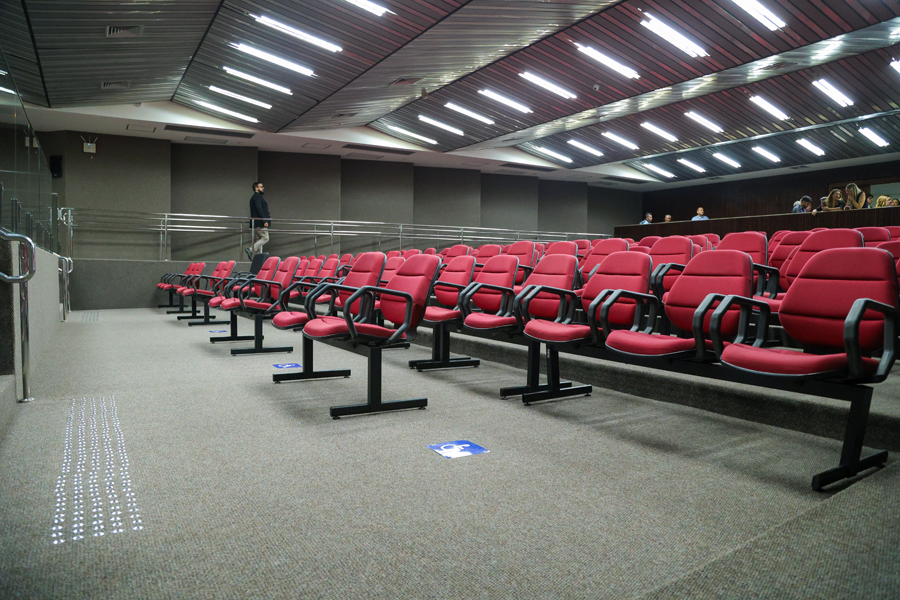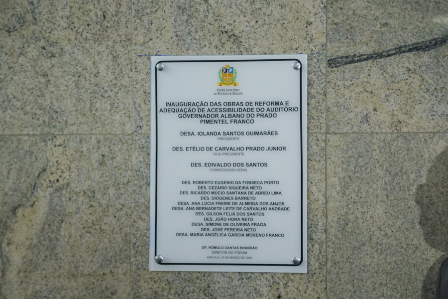 A presidente do Tribunal de Justiça de Sergipe (TJSE), desembargadora Iolanda Guimarães, inaugurou nesta sexta-feira, 20 de março, as obras de reforma e adequação de acessibilidade do Auditório governador Albano do Prado Pimentel Franco, o Auditório do Júri, no Fórum Gumersindo Bessa. Os serviços incluíram a exclusão de barreiras que limitavam o acesso ao palco e a plateia, facilitando a circulação, e a instalação de mesas acessíveis, rampas, piso tátil e sinalização adequada para pessoas com deficiência, obesidade ou mobilidade reduzida.