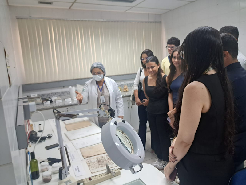 Além das conversas, os estudantes participaram de uma visita guiada às dependências do Arquivo Judiciário, realizada pela analista judiciária (especialidade Arquivologia), Aysha Adab Santos Cavalcante. Os alunos conheceram os acervos e as áreas técnicas responsáveis pela preservação da documentação, a exemplo do laboratório de conservação e restauro.