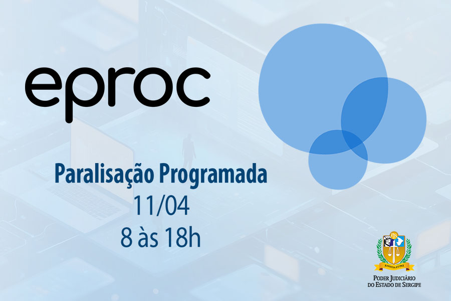 O Tribunal de Justiça de Sergipe (TJSE) informa que o sistema eproc passará por uma interrupção programada no próximo dia 11 de abril de 2026, no período das 8h às 18h, para a realização de atualização técnica previamente planejada, com possibilidade de restabelecimento antes do horário previsto.