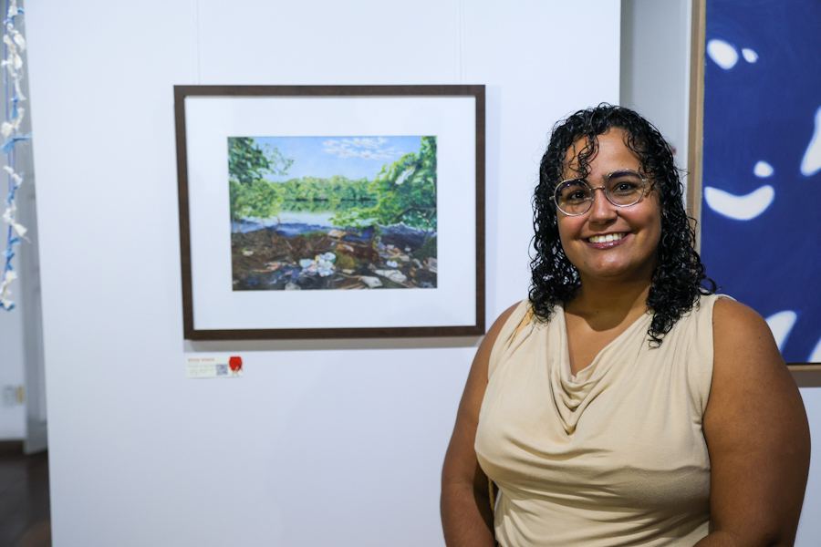 Uma das artistas contempladas foi Aline Viana, com a obra Paisagem do Rio Poxim. Em um desenho feito com lápis de cor, ela mostra a margem do rio repleta de lixo. “Fiz uma espécie de crítica política, no sentido de o ambiente hoje estar cada vez mais entulhado de lixo, não só na capital sergipana, mas como em todos lugares, prejudicando paisagens que poderiam ser lindíssimas”, lamentou a artista.