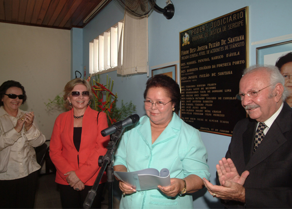 Foi inaugurado na manhã desta quinta-feira, 27, o Fórum Desembargadora Josefa Paixão de Santana, local onde funciona o Juizado Especial de Acidentes de Trânsito, localizado no bairro Castelo Branco, zona oeste da capital. Durante a solenidade, o Presidente do Tribunal de Justiça, Desembargador Pascoal Nabuco disse que a patrona do fórum é uma mulher formidável, séria, honrada e que dignifica a magistratura sergipana. O Presidente destacou, também, que Josefa Paixão estava concluindo a missão de Corregedora Geral de Justiça, e prestes a assumir a presidência do Tribunal Regional Eleitoral.