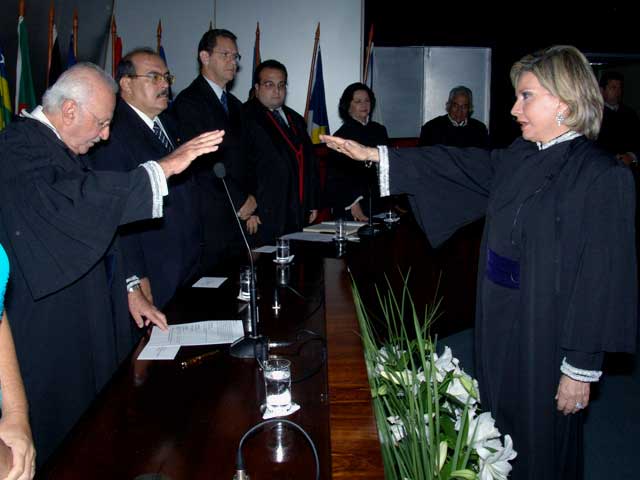 Aos servidores eu gostaria de dizer que, assim como me sinto Juíza, antes de mais nada, sinto-me servidora. Os senhores são a maioria do nosso quadro e ocuparão a maioria dos cargos de direção dessa gestão. Mais de 80% dos cargos, do primeiro ao último escalão, serão ocupados por servidores da casa. Daí, a oportunidade histórica de provarem possuir inteligência e competência para gerirem a sua própria casa.